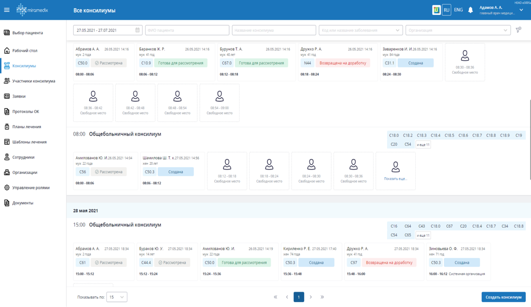 Сервис для комплексной автоматизации мультидисциплинарных онкологических консилиумов, включая взаимодействие между различными учреждениями. Решение помогает врачам коллегиально обсуждать случаи пациентов и определять оптимальную тактику лечения. Оно предоставляет инструменты для профилирования специалистов, управления медицинскими кейсами и координации расписаний, минимизируя рутинные задачи и снижая риски врачебных ошибок.
